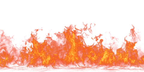 Large fire explosion with glowing embers, cinematic blast effect isolated on white background