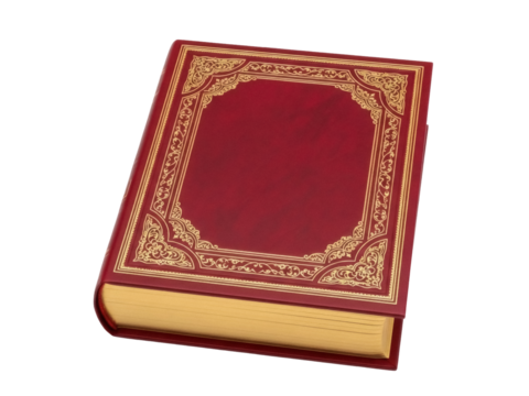 Isolated red book with gold decoration, vintage, antique, literary, study, read and knowledge