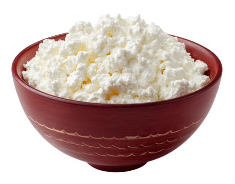 Creamy, crumbly cheese in a red bowl
