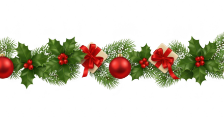 Elegant Christmas corner border featuring holly leaves, berries, and festive red bows isolated on white background