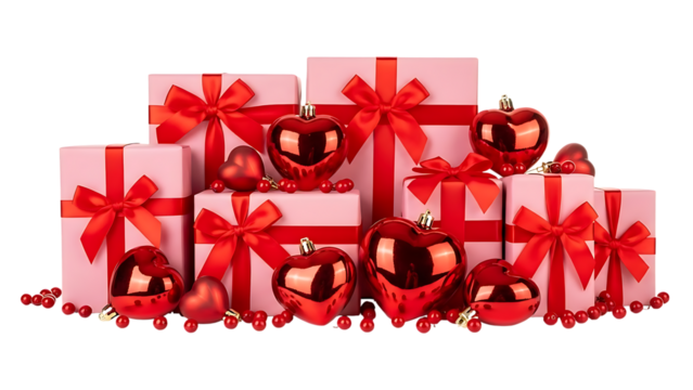 Festive christmas garland with red bows and golden baubles isolated on transparent background