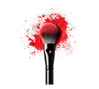 A makeup brush with red bristles is on top of a pile of red powder