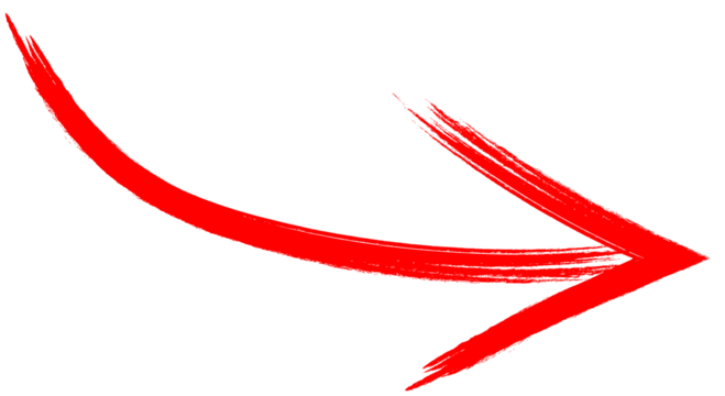 Vibrant red brush stroke arrow pointing upwards and to the right isolated on transparent background