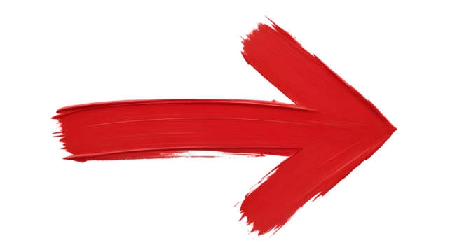 Red paint stroke forming an arrow pointing right with a textured brush finish
