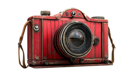 Retro red camera vintage photography isolated on transparent background