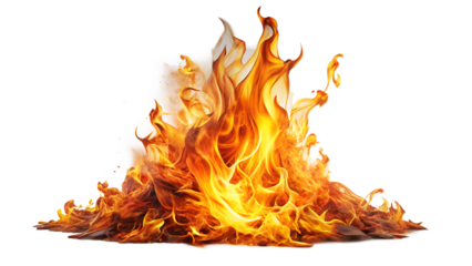 Intense fire flames burning brightly on transparent background