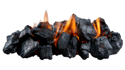 Burning Black Coal Embers With Orange Flames On Transparent Background, PNG