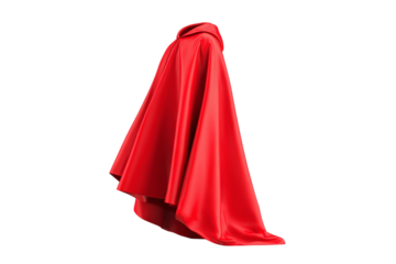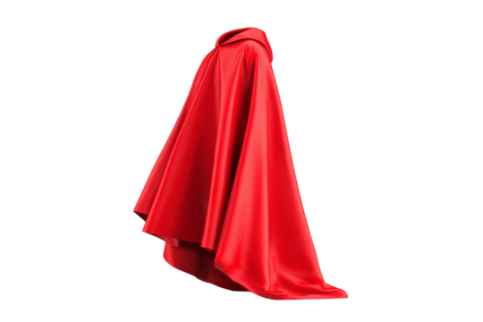 Flowing red satin cape with dramatic folds and highlights isolated on a transparent background red cape