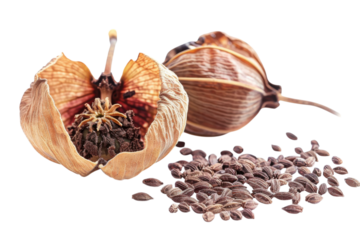 Medication bottle with blue pills and capsules isolated on a transparent background