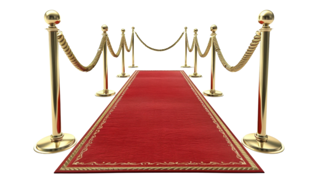 Red Carpet Entrance with Golden Stanchions Isolated on Transparent Background