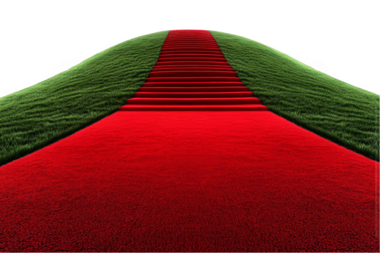 Abstract PNG Illustration Of A Red Carpet Leading Up Green Stairs With Bright Lighting