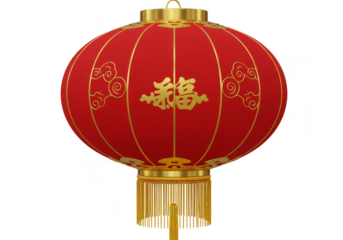 A vibrant red Chinese lantern with golden accents hanging against a blank canvas, radiating festive warmth and cultural richness Isolated on a transparent background.