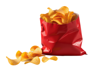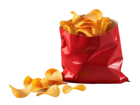 Crispy potato chips in red bag