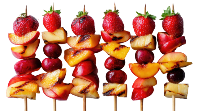 Fresh, healthy pears and apples in on chopsticks with juicy, red strawberries