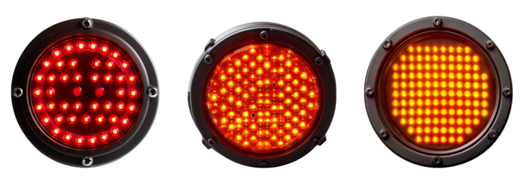 Futuristic flying saucer with glowing red lights, circular shape, and smooth metallic surface, isolated on transparent background, evokes mystery and advanced technology