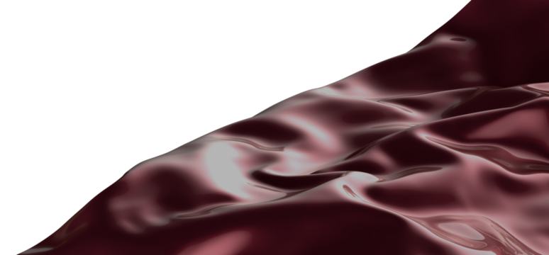 Flowing red silk superhero cape waving in the wind, shiny fabric texture. Isolated on transparent background, png