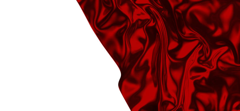 Artfully draped, a vivid red cloth floats elegantly against a pure white backdrop, creating a visually striking image