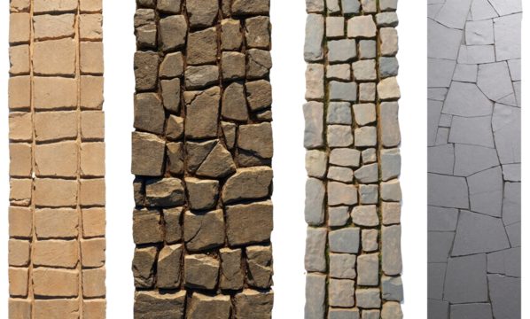 a top-down view of a set of a different stone path on a transparent background