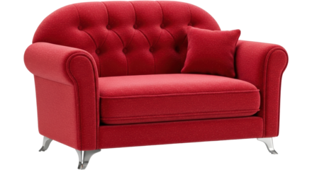 Modern red sofa isolated on transparent background representing comfort and style