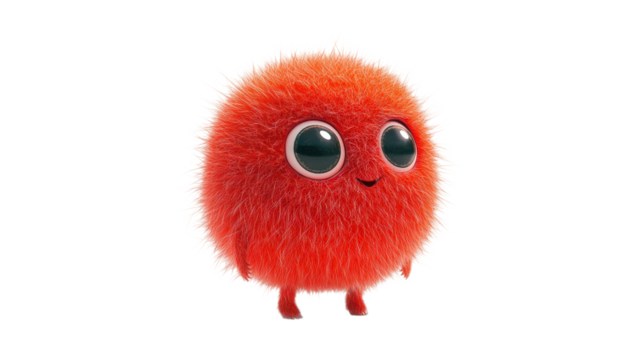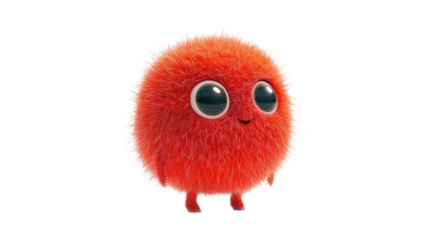 Fluffy red creature standing on white background