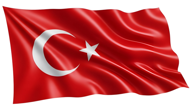 Turkish flag featuring a white star and crescent on a red background, symbolizing the nation of Turkey on transparent background.