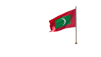 A vibrant red flag with a green square and white crescent symbol flaps gently in the wind, showcasing a patriotic display against a stark black background, creating a sense of national identity and...