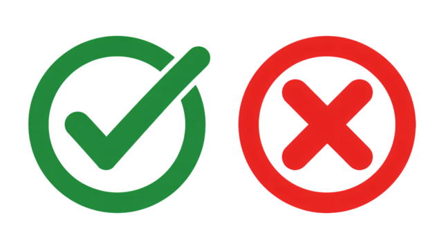 Green checkmark and red cross icons on white background