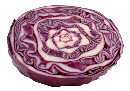 Red cabbage sliced in half vegetable healthy food photography culinary ingredient fresh produce diet raw food on transparent background