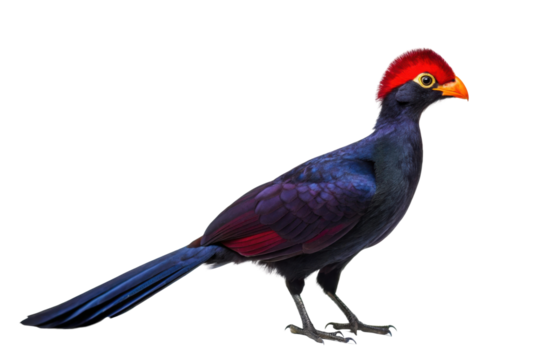 Vibrant bird with striking red crown and colorful plumage standing on white surface in natural pose for wildlife enthusiasts