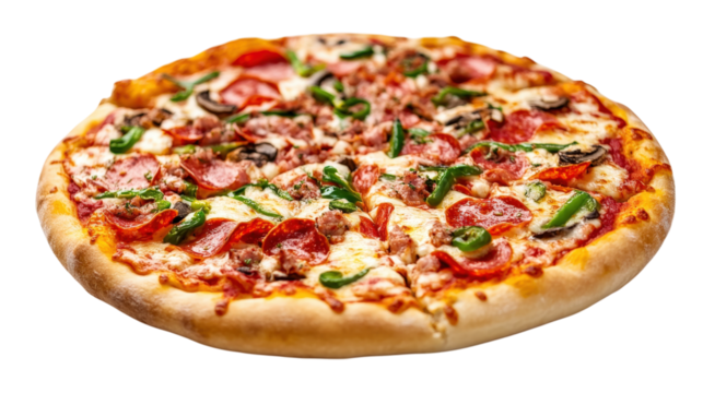 Pepperoni Sausage Mushroom Pizza isolated on a transparent background