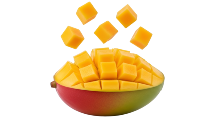 A festive red gift box with a shiny orange ribbon and bow isolated on transparent background