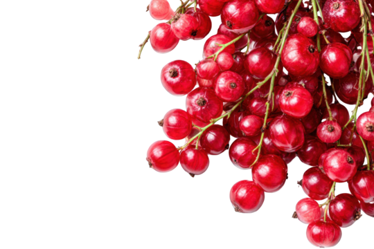 Vibrant red currants scattered in an elegant arc, showcasing their fresh appeal and natural beauty on a clean white background, perfect for healthy eating concepts