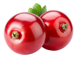 Fresh red currants spilling from a burlap sack and woven basket on transparent background
