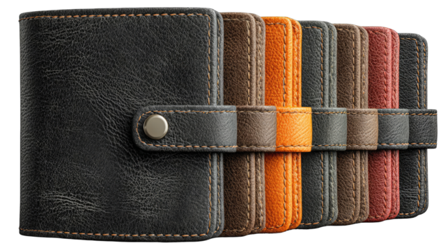 A rich red leather wallet, subtly textured, with stitched edges, photographed against a stark black background
