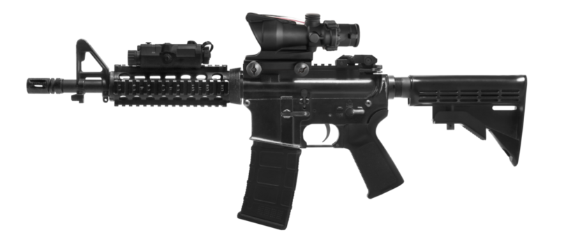 Weapons and military equipment for army, Assault rifle gun (M4A1) with attachment, Acog red dot sign isolated on white background