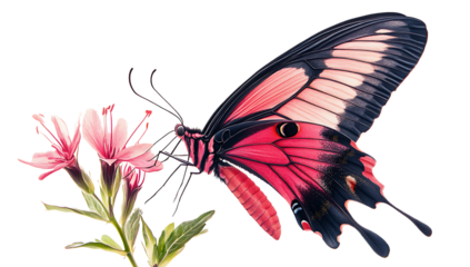 A pink and black butterfly with red dots isolated on white background.PNG