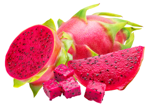 Bright red dragon fruit on a transparent background
