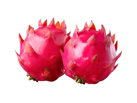 Fresh red dragon fruit whole and sliced isolated on transparent background