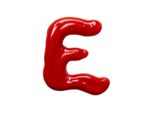 A vividly red furry letter e displayed against a stark black backdrop in a studio setting isolated on transparent background