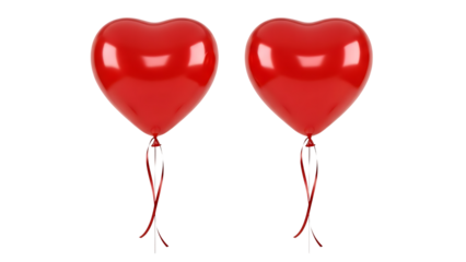 Two red heart shaped balloons isolated on transparent background