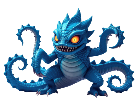A terrifying zombie with glowing red eyes and tattered clothing, isolated on a transparent background, reaching out with decaying hands in a menacing pose, representing horror and the undead