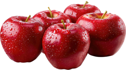 Red Apple Still Life: A cluster of five vibrant, glistening red apples, each adorned with tiny water droplets, creates a visually appealing still life composition.