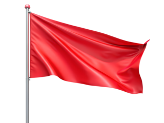 red flag fluttering in the wind cut out isolated on white background PNG , AI GENERATED
