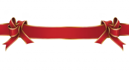 Red Ribbon Banner with Gold Trim Isolated on Transparent Background graphic design