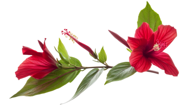A vibrant red hibiscus flower against a transparent background.