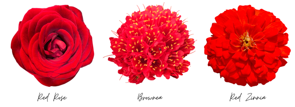 A stunning array of vibrant red flowers showcasing various shapes and textures, perfect for floral designs and seasonal projects.