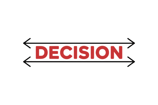 Decision sign in bold red font with double-sided arrows in simple graphic design for business presentation