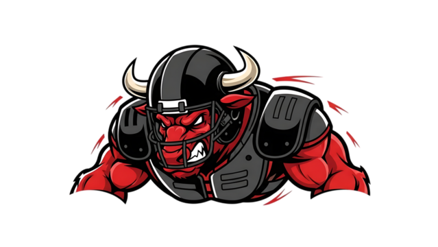 Aggressive red bull mascot in American football gear