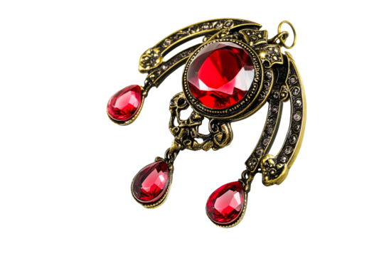 Ancient treasure medallion with intricate design and red gems, isolated on transparency background. This unique piece showcases craftsmanship and historical significance