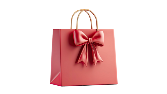 Red-handled shopping bag floating against transparent backdrop, highlighting graphic design mockup potential